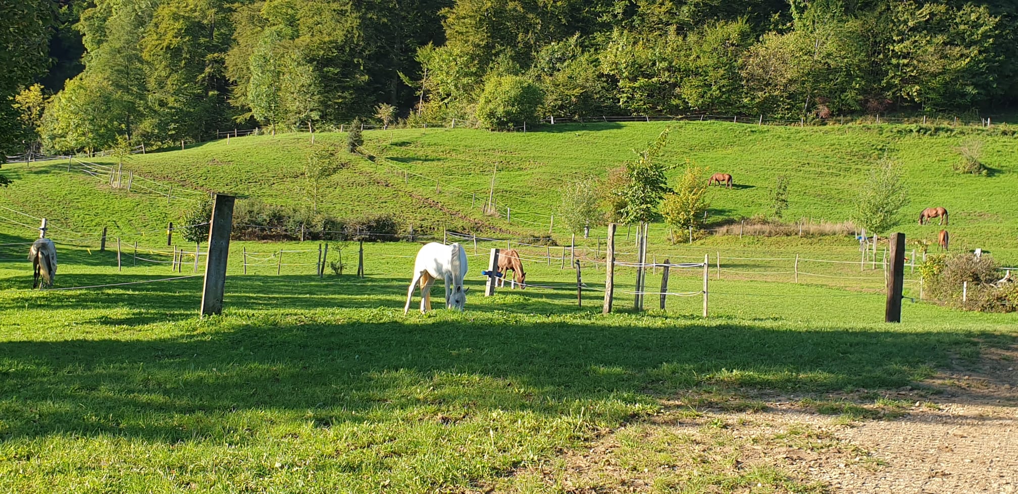 - grosszügige Weiden, schönes Reitgelände in verkehrsarmer Natur